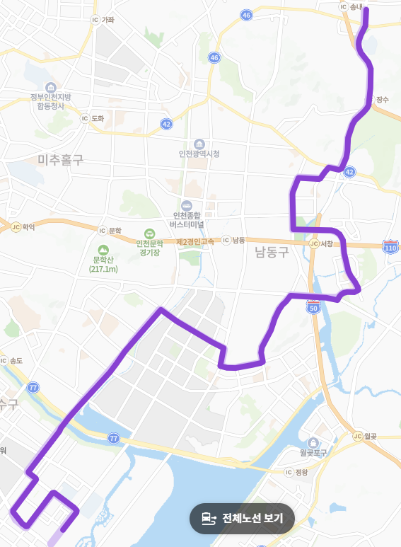 지하철 접근이 어려운 시내 구간 이동 편리: 인천 시내를 이동할 때 지하철 노선이 닿지 않는 지역(예: 논현동, 도림동, 서창동 일부)을 통과하므로, 시내 이동에 있어서 지하철을 이용하는 것보다 편리할 수 있습니다.