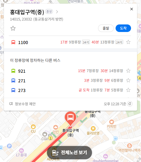 마지막 버스 정류장 홍대입구역 위치 알아보기