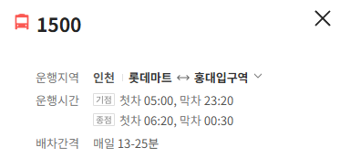 인천 1500번 버스 노선 정보