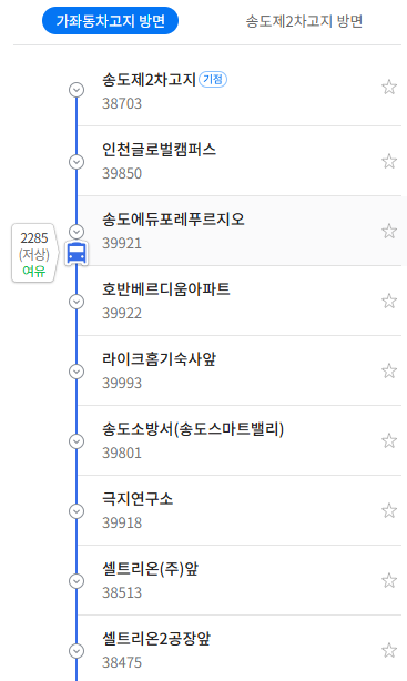송도 내 핵심 주거지역: 송도국제도시의 주요 아파트 단지(마스터뷰, 엑스포빌리지 등) 및 송도2동행정복지센터 인근을 지나가며, 송도 주민들의 생활교통 역할을 담당합니다.