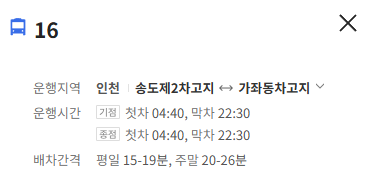 원도심 접근성 우수: 16번 버스는 송도국제도시에서 동인천역으로 이동하는 가장 빠르고 효율적인 노선 중 하나로 꼽힙니다. 송도 주민들이 신포시장, 동인천 등 원도심으로 이동할 때 가장 선호하는 노선 중 하나입니다.