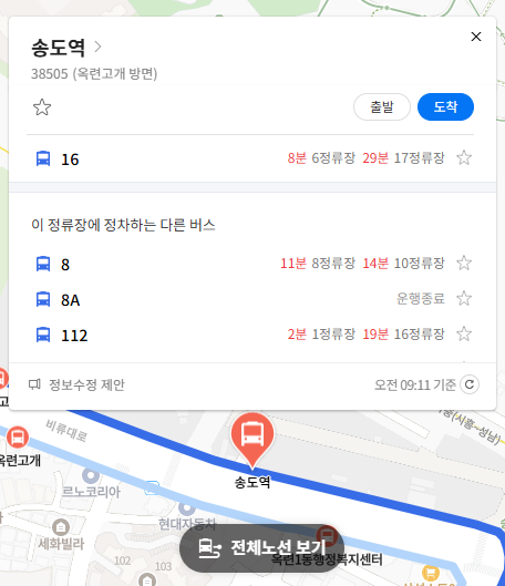 실시간 위치를 확인하시면 현재 버스의 위치를 알 수 있습니다.