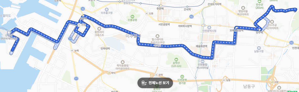 인천의 남동구, 미추홀구, 중구를 직선에 가깝게 연결하는 구조로 되어 있어 이동 효율이 매우 높습니다.