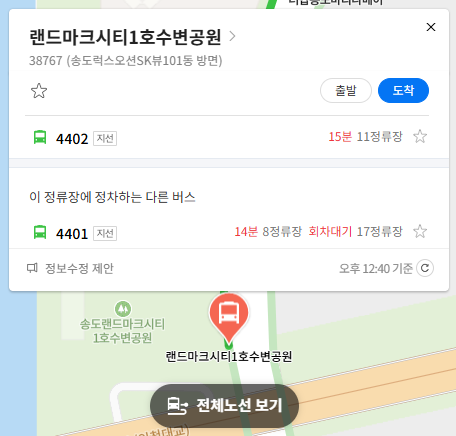 마지막 정류장 랜드마크시티1호수변공원 위치 알아보기