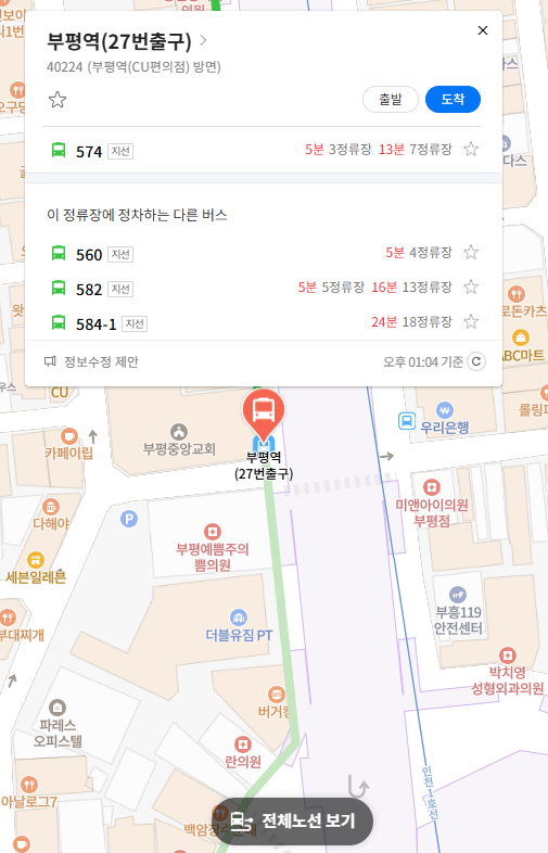 마지막 정류장 부평역(27번출구) 위치 알아보기