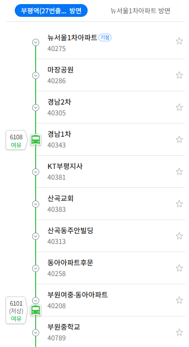부평구 지선 버스 노선 중에서 수요가 가장 많아 배차 간격이 5~8분으로 비교적 짧습니다.