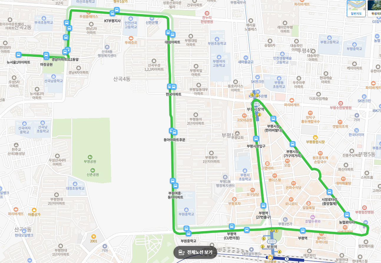 대규모 아파트 단지가 형성된 산곡4동, 부평1동에서 부평역 및 인근 상권을 연결하는 역할을 합니다.