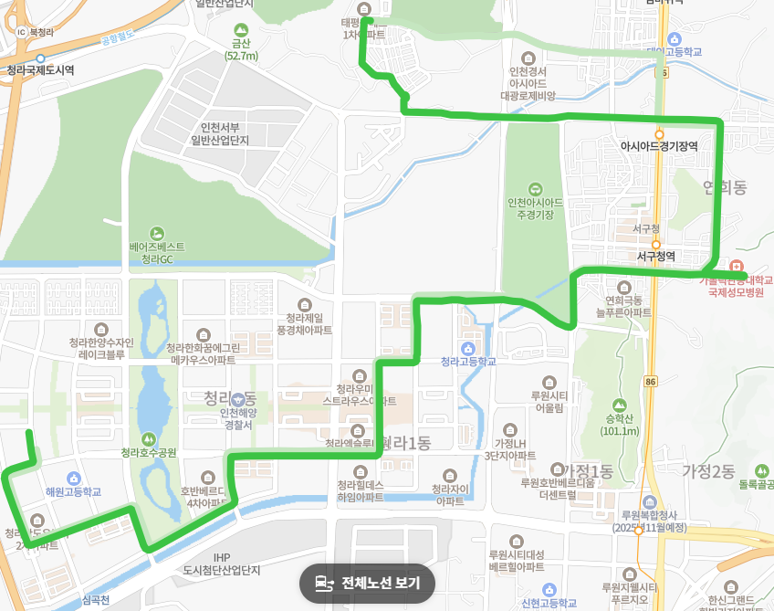 ● 서인천세무서 접근 용이: 기점이 서인천세무서(청라문학공원)로 연장되어 세무서 방문객들에게 편리합니다.