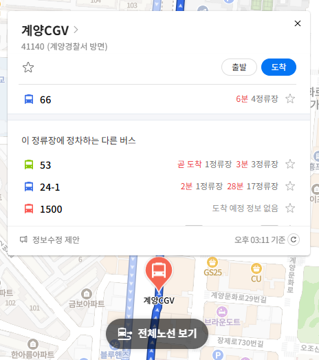 실시간 위치를 확인하시면 현재 버스의 위치를 알 수 있습니다.