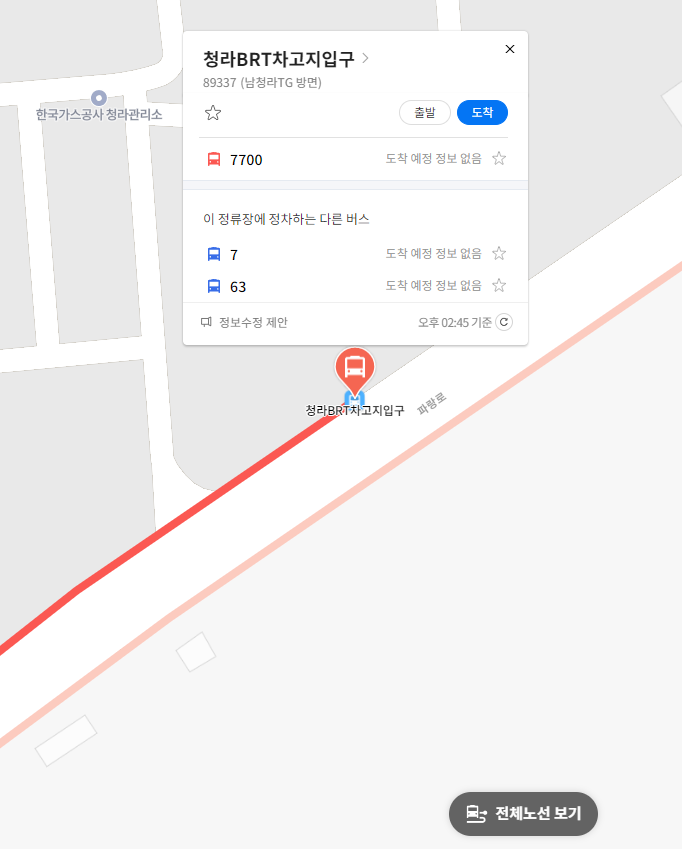 첫 번째 정류장 청라BRT차고지입구 위치 알아보기