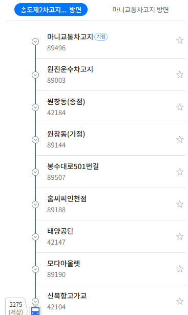 종점 : 송도제2차고지입구
