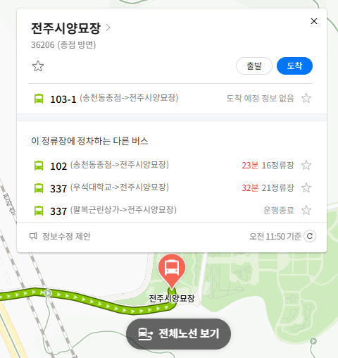 주요 버스정류장 전주시양묘장 위치 알아보기