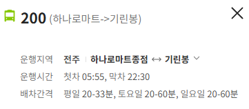 전주 200번 버스 노선 정보