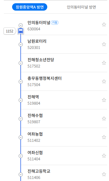 시외/시내 환승 중심지: 남산공원환승센터(남산버스정류소)와 인의동종점(진해시외버스터미널 인근)을 경유하여 시외 교통 및 창원시 내 다른 노선으로의 환승이 용이합니다.