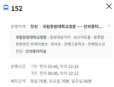 창원 152번 버스 배차간격