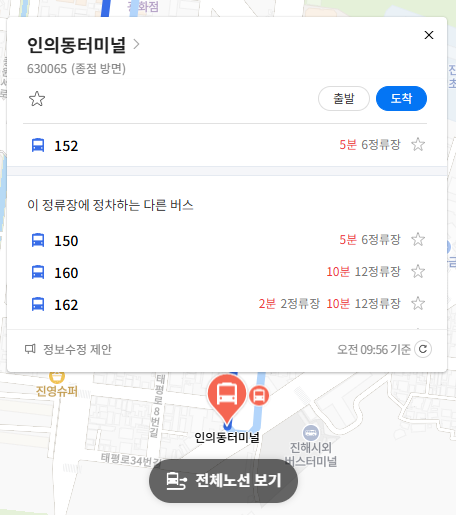 창원 152번 버스 실시간 위치 조회하기