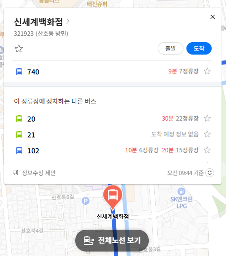 주요 버스 정류장 신세계백화점 위치 알아보기