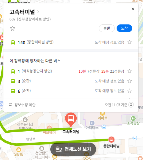 첫 번째 버스 정류장 고속터미널 위치 알아보기