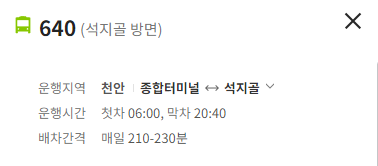 천안 640번 버스 노선 정보
