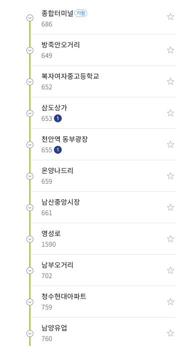 천안 640번 버스 실시간 위치 조회하기