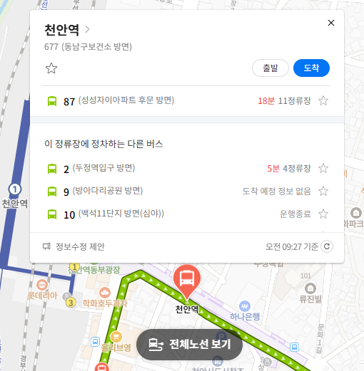 천안 87번 버스 실시간 위치 조회하기