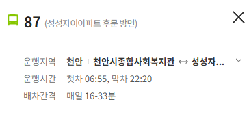 천안 87번 버스 노선 정보