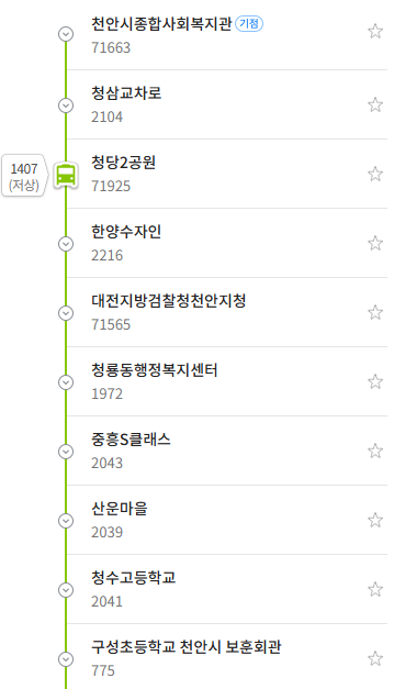 노선상에 대전지방검찰청 천안지청, 청룡동 행정복지센터, 동남구 보건소 등 주요 공공기관이 밀집해 있습니다. 민원 업무를 보러 가는 시민들에게는 최적의 노선입니다.