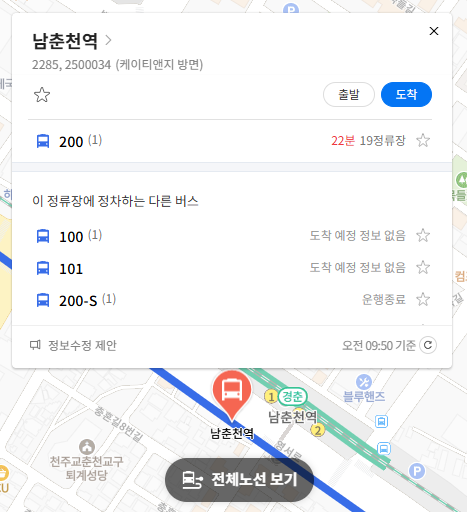 주요 버스 정류장 남춘천역 위치 알아보기