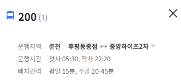 춘천 200번 버스 노선 정보