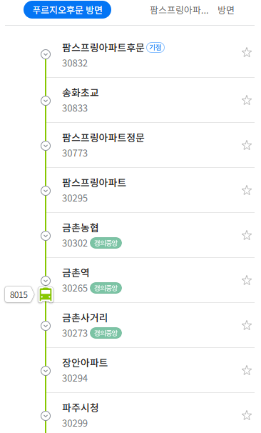 팜스프링아파트 후문을 유일하게 경유하는 노선으로, 이 지역 주민들에게는 필수적인 교통수단입니다.