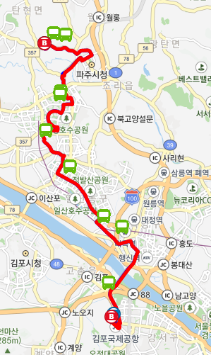 파주 운정신도시, 김포시 전역 연결: 파주 운정신도시부터 김포시의 다양한 지역을 연결합니다.