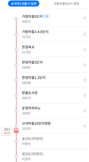 기점행 : 첫차 : 05:00 막차 : 23:30