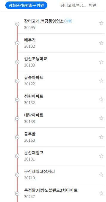 기점행 : 첫차 : 04:50 막차 : 00:25