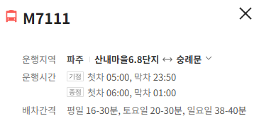 파주 M7111번 버스 배차간격