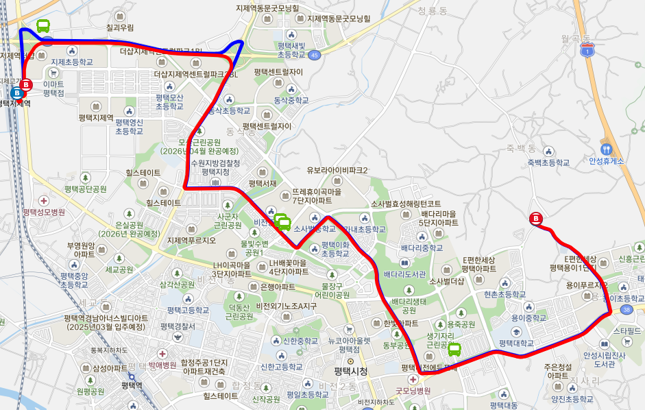 주요 경유지: 기남방송, 스타필드, 평택대학교, 소사벌지구, 평택지제역