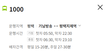 평택 1000번 버스 배차간격