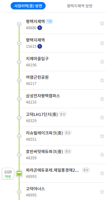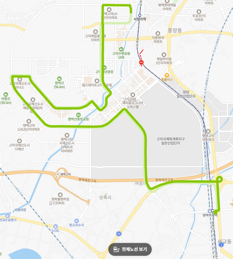 주요 경유지: 평택지제역, 삼성전자 평택캠퍼스, 고덕국제신도시, 서정리역
