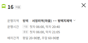 평택 16번 버스 노선 정보