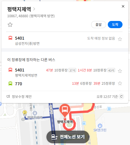 실시간 위치를 확인하시면 현재 버스의 위치를 알 수 있습니다.