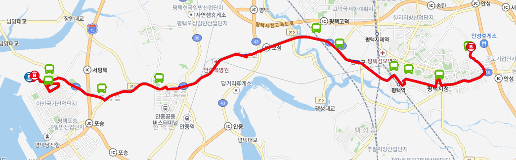 포승읍 방향으로 운행하며, 평택 서부 지역의 주요 주거 및 상업 지역을 연결합니다.