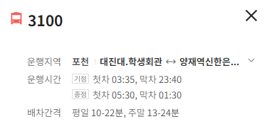 종점행 : 첫차 : 05:30 막차 : 01:30
