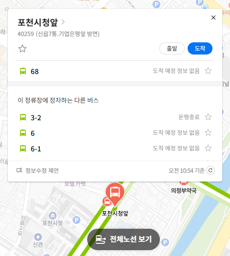 주요 버스 정류장 포천시청앞 위치 알아보기