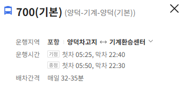 포항 700번 버스 배차간격