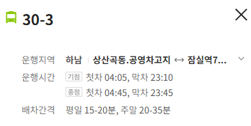 종점행 : 첫차 : 04:45 막차 : 23:45