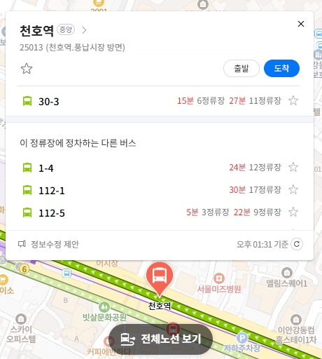 주요 버스 정류장 천호역 위치 알아보기