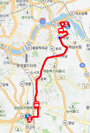 성남시 주요 지역인 판교역, 야탑역 등으로의 접근이 용이합니다.