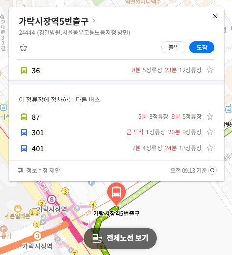주요 버스 정류장 가락시장역5번출구 위치 알아보기