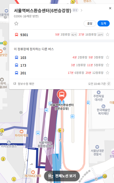 마지막 정류장 서울역버스환승센터(6번승강장)(중) 위치 알아보기