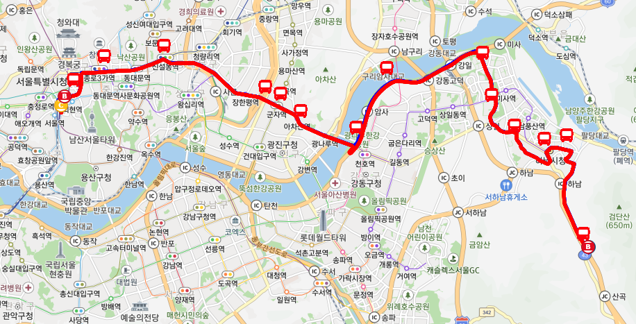 1. 하남시에서 서울 도심으로의 유일한 노선: