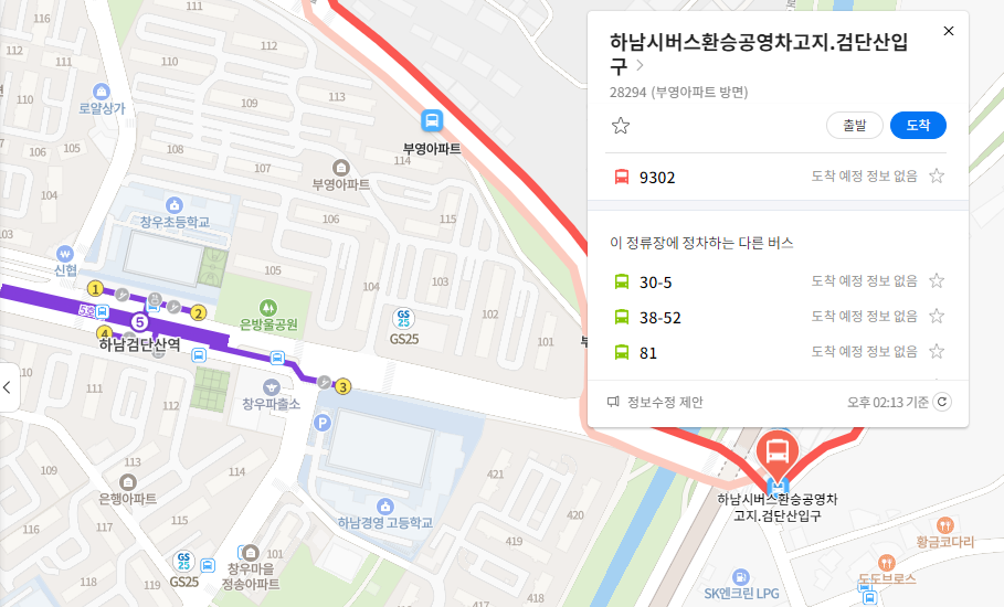 하남 9302번 버스 실시간 위치 조회하기